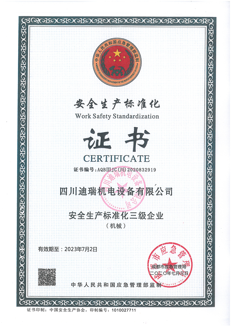 安全生產(chǎn)標(biāo)準(zhǔn)化證書